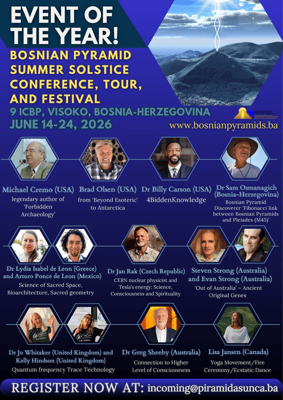 Greg Sheehy joins an international lineup of speakers at the Summer Solstice Conference, Tour & Festival 2026, a powerful gathering focused on consciousness, ancient knowledge, and human potential, held at the Bosnian Pyramid complex.